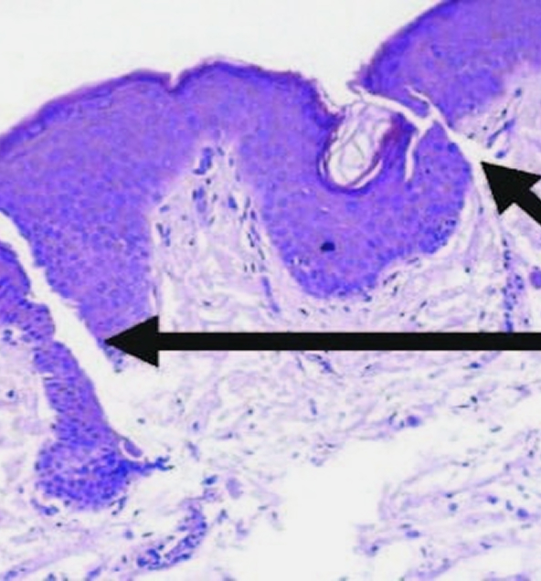 - This occurs at the dermal-epidermal junction (DEJ).
